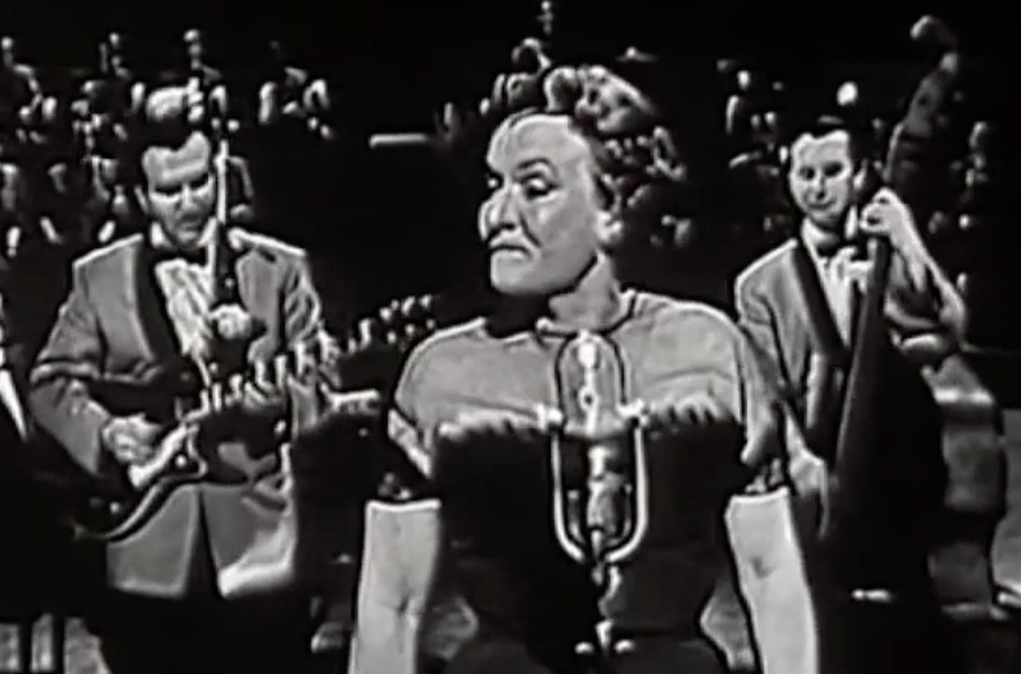 I like Sidney Bechet’s version, which in my mind has plenty of “guts.” He praised the version by Roberta Sherwood (seen at top with the Mills Bros.), a lesser known jazz singer. Her rendition of “Lazy River” hit No. 57 on the Hot 100 in 1956.